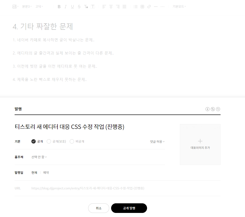 3. 이전에 썻던 글을 이전 에디터로 못 여는 문제..