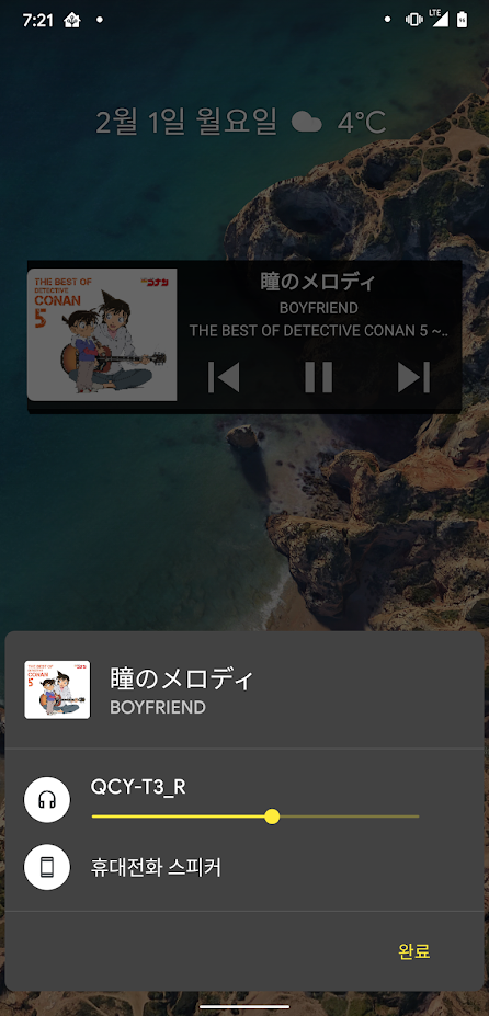 상단바에 음악이 재생되고 있으면, 출력 부분이 활성화 되어 선택이 가능합니다.