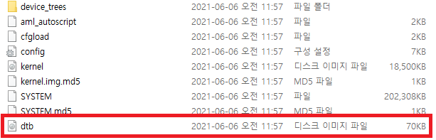 device_trees 폴더로 이동하여 하기 파일을 복사하여 최상위에 dtb.img 로 이름을 바꾸어 놓습니다.
