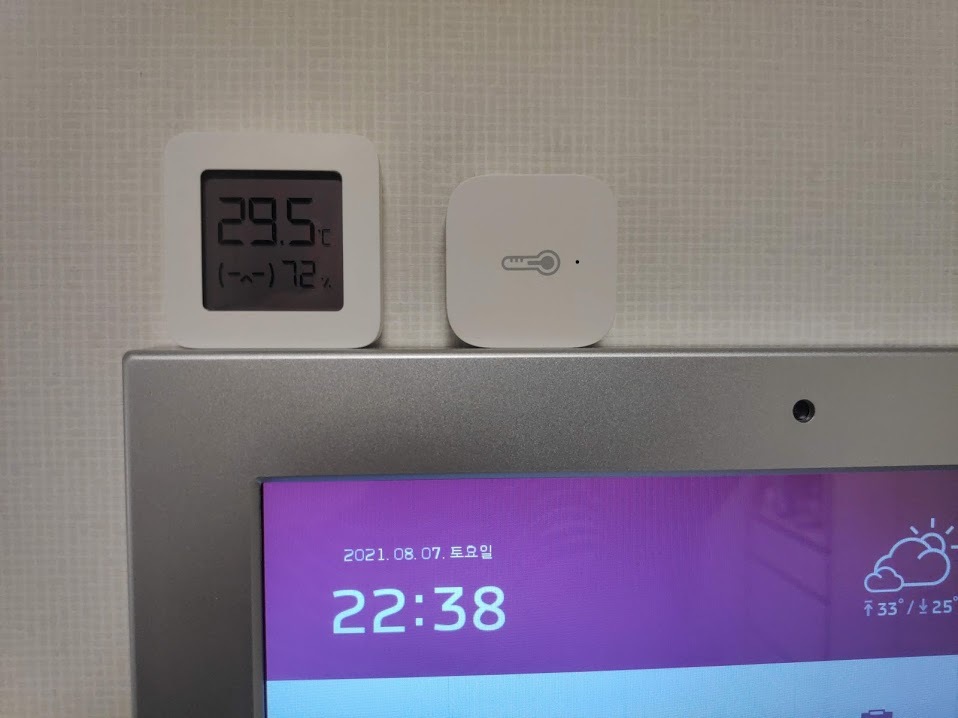 월패드 위에 직비 온도센서와 같이 두어 보았습니다.