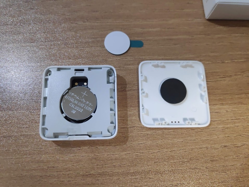 건전지가 개봉전까지 사용하지 못하도록 비닐 처리가 되어 있으며, 내부를 열어보니, 하기에 CR2302 배터리를 사용하고 있습니다. 그리고 어디 부착할 수 있도록 양면 테이프까지 동봉되어 있네요.