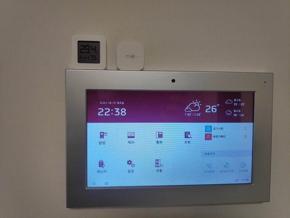 월패드 위에 직비 온도센서와 같이 두어 보았습니다.
