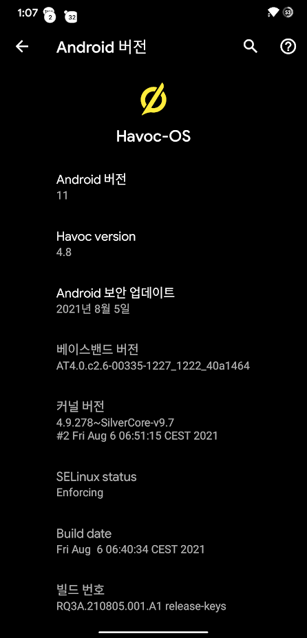 하복OS 4.8 / 안드로이드11 입니다.