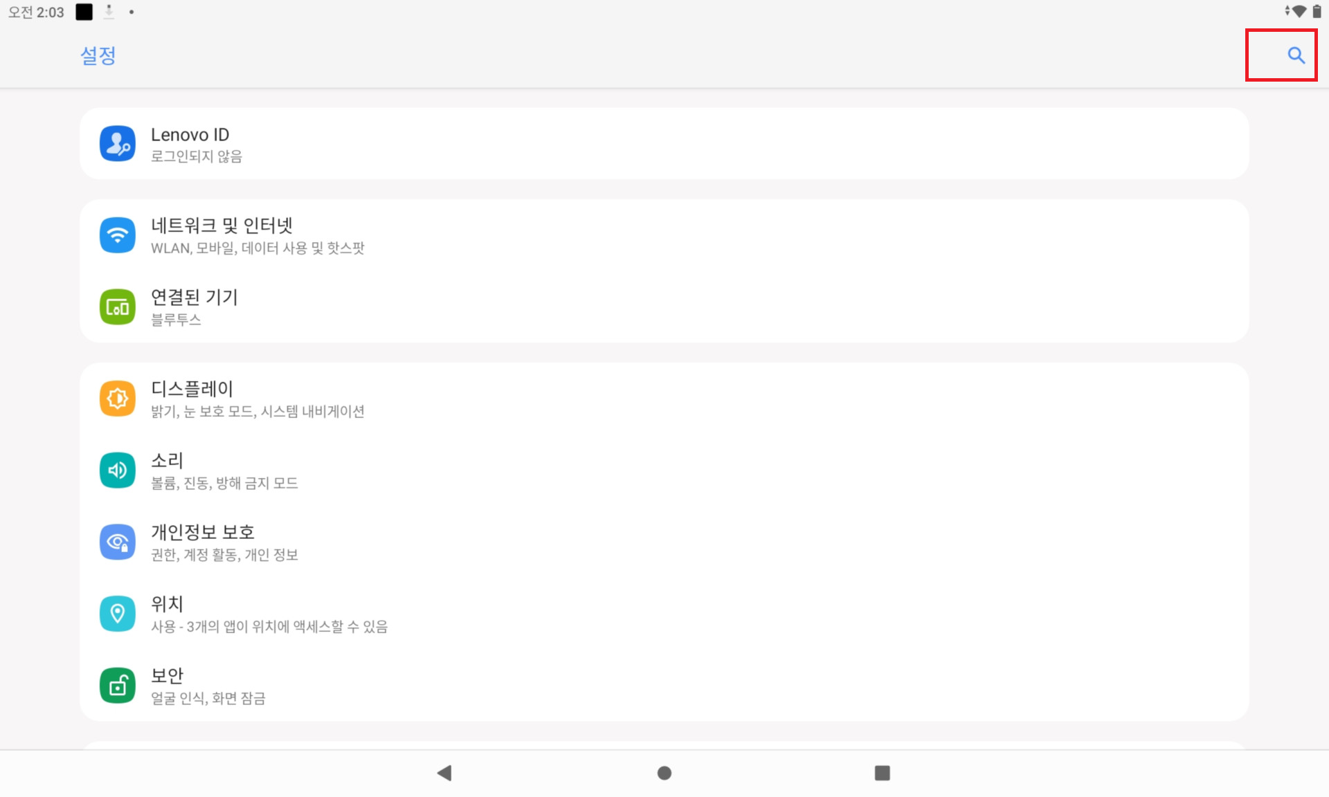 설정으로 들어가서 우측 상단에 돋보기를 누릅니다.