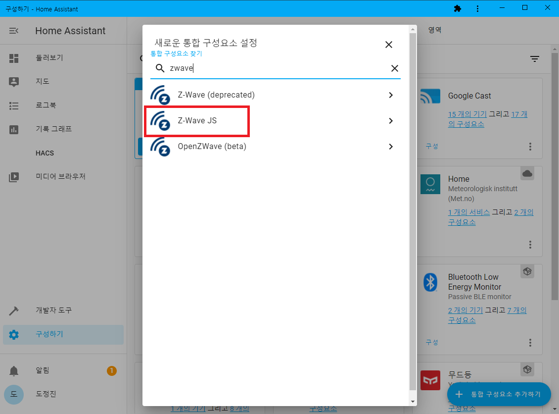 HA 에서 Z-Wave JS Integration 설정을 해보도록 하겠습니다.