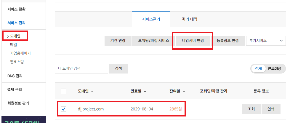 2. 도메인의 네임서버 변경