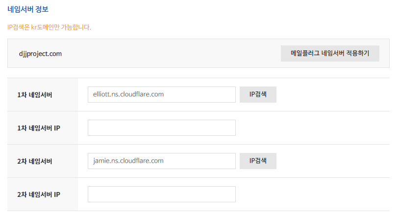 cloudflare 의 네임서버를 등록합니다.