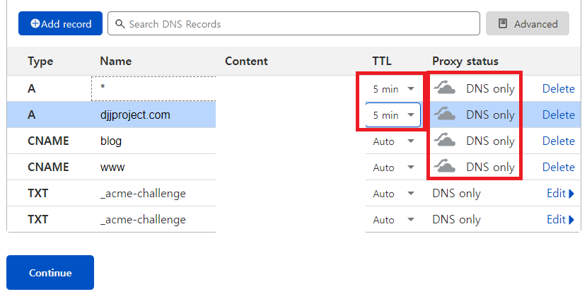 그리고 TTL 의 경우, DDNS의 경우 5분으로 설정하고 일반적인 스태틱의 경우에는 10분으로 설정하는 것이 가장 좋다고 하는데요.