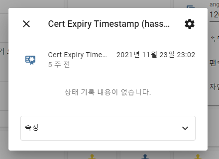 HA에서 센서가 나 조만간 인증서 만료되니까 참고해 라고 알려주네요.