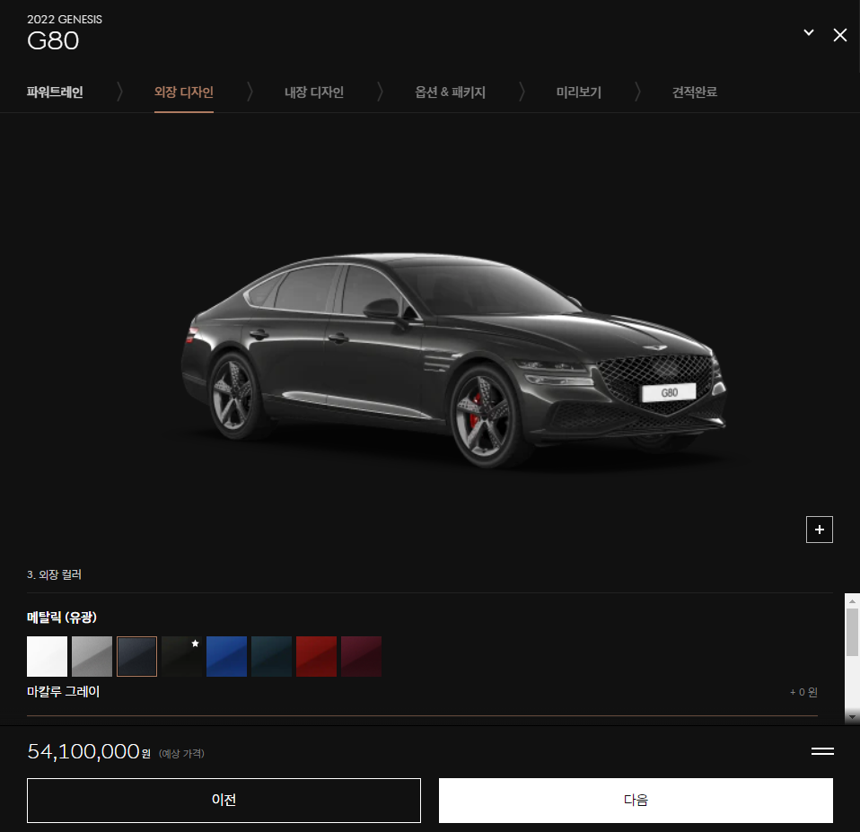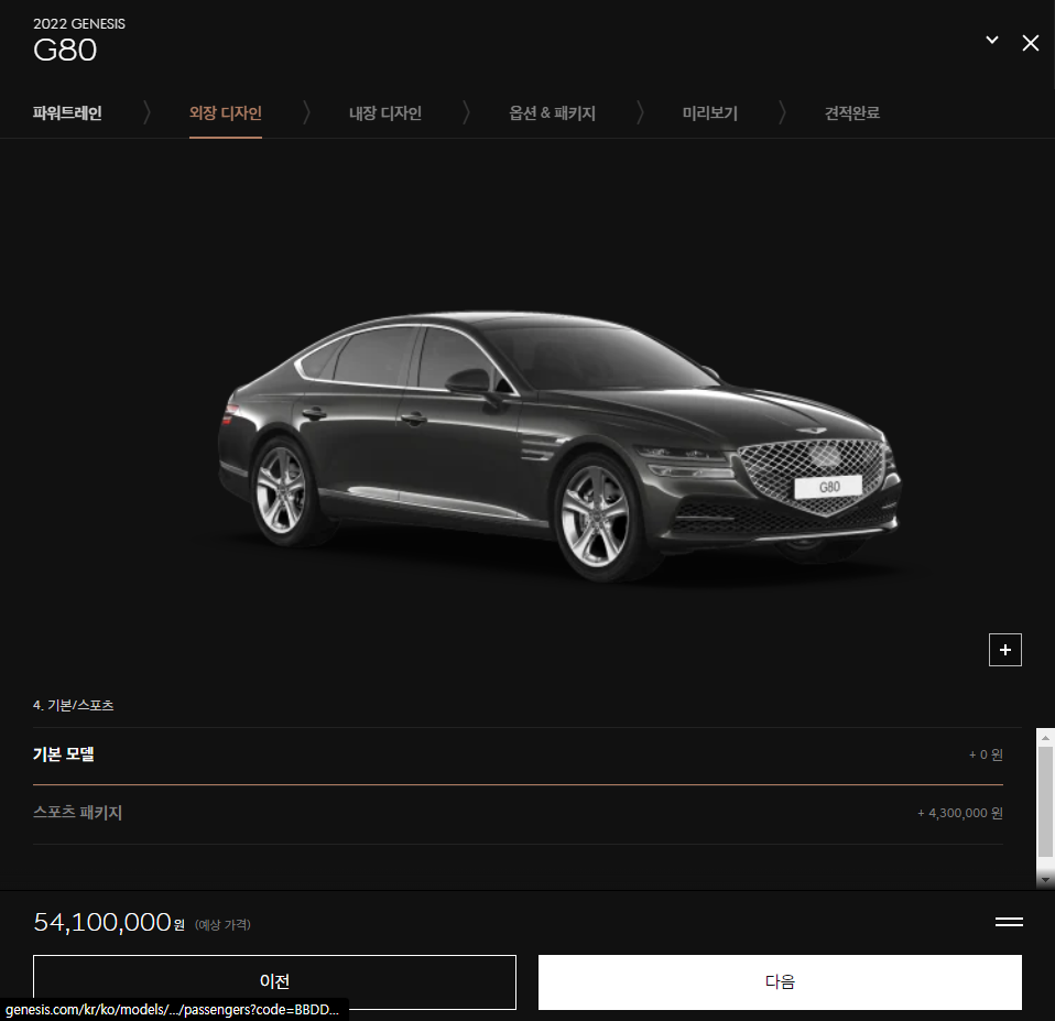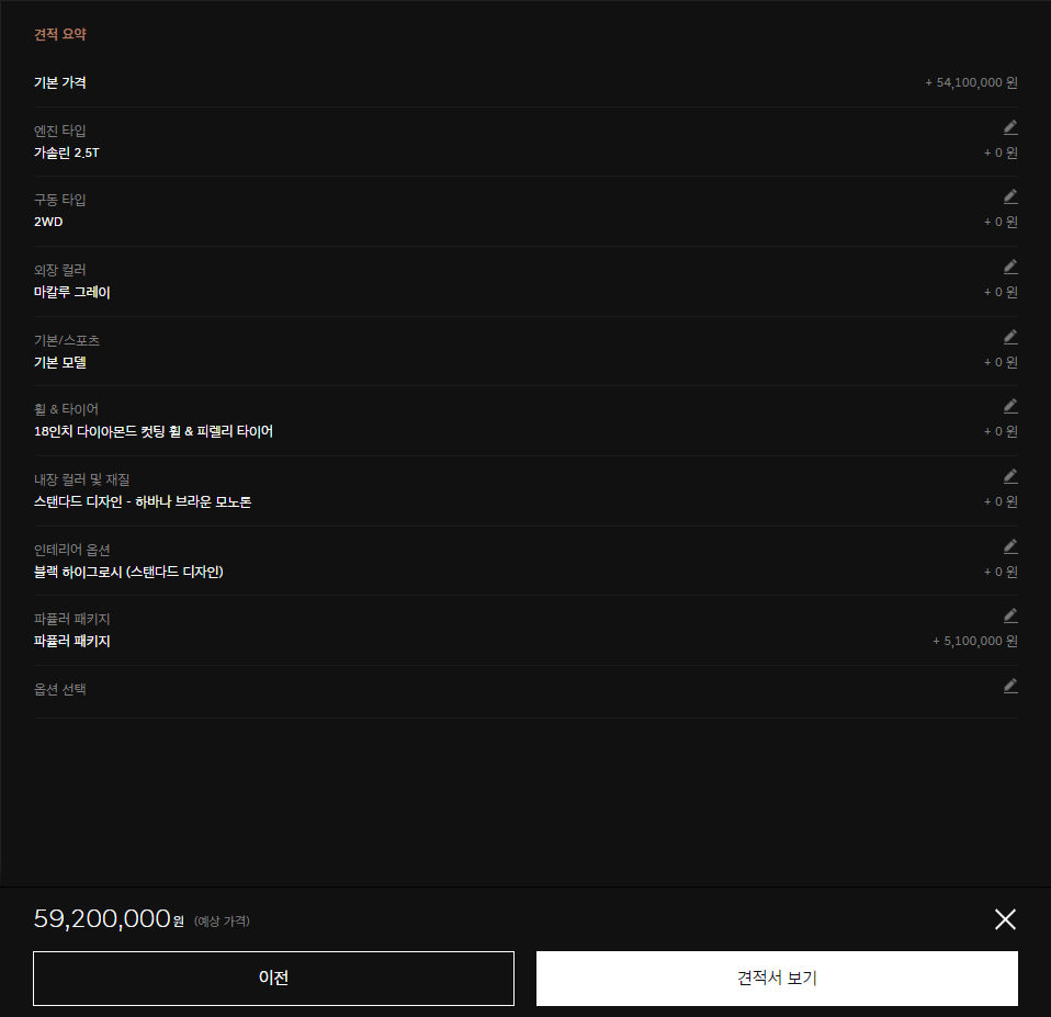 일단 기본 깡통 가격은 5410만원 부터 시작합니다.