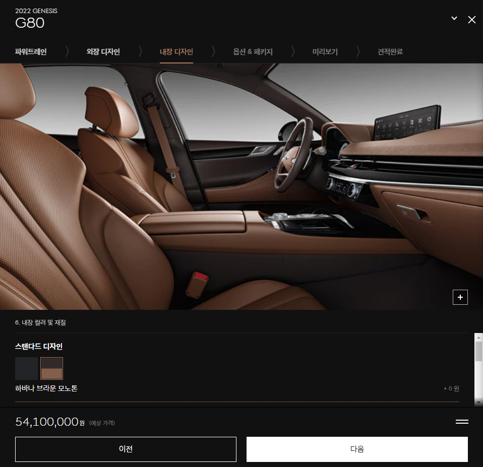 시트 옵션을 넣으라고 하는 조언들이 많이 있었으나 실리를 추구하는 입장에서는 비슷한 하바나 브라운으로 선택하게 되었습니다.