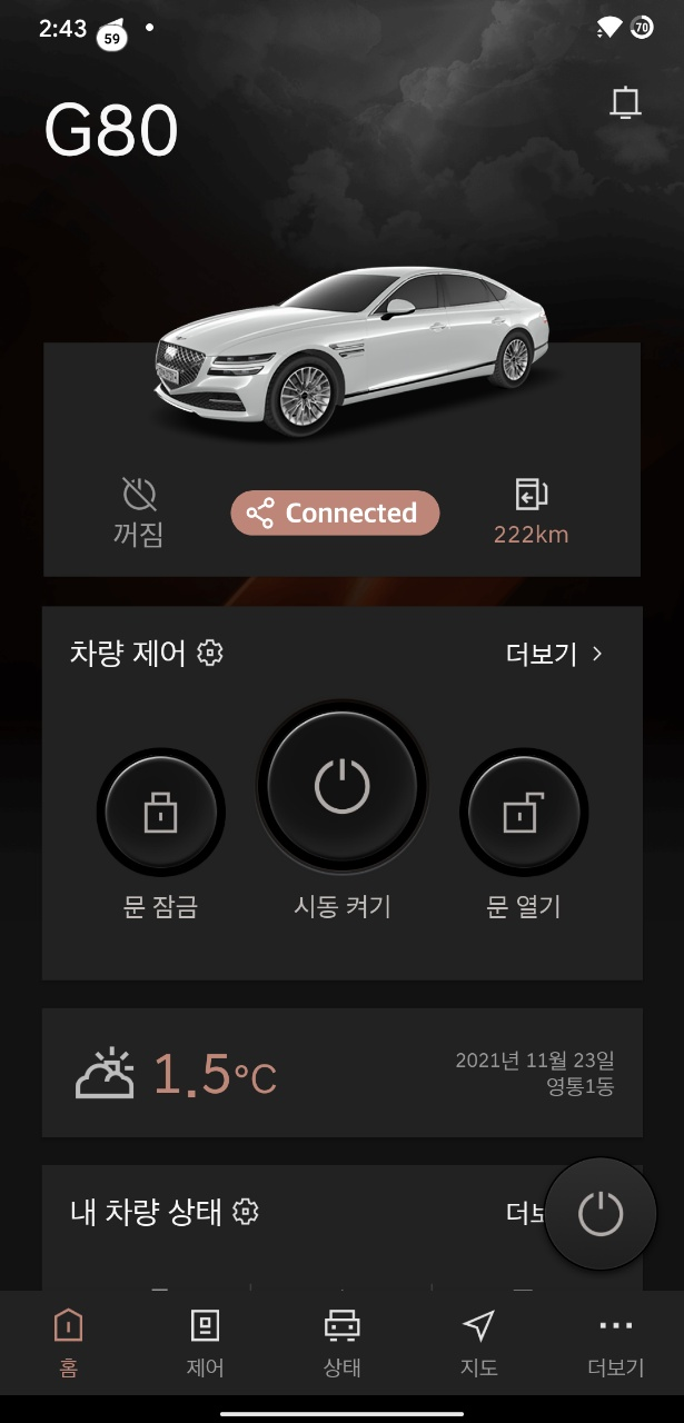 차량 상태나 문열림 잠금 시동 등을 편하게 설정이 가능합니다.