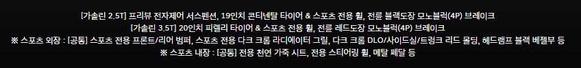일단 스포츠 패키지를 선택하면 하기 사양이 추가됩니다.