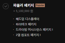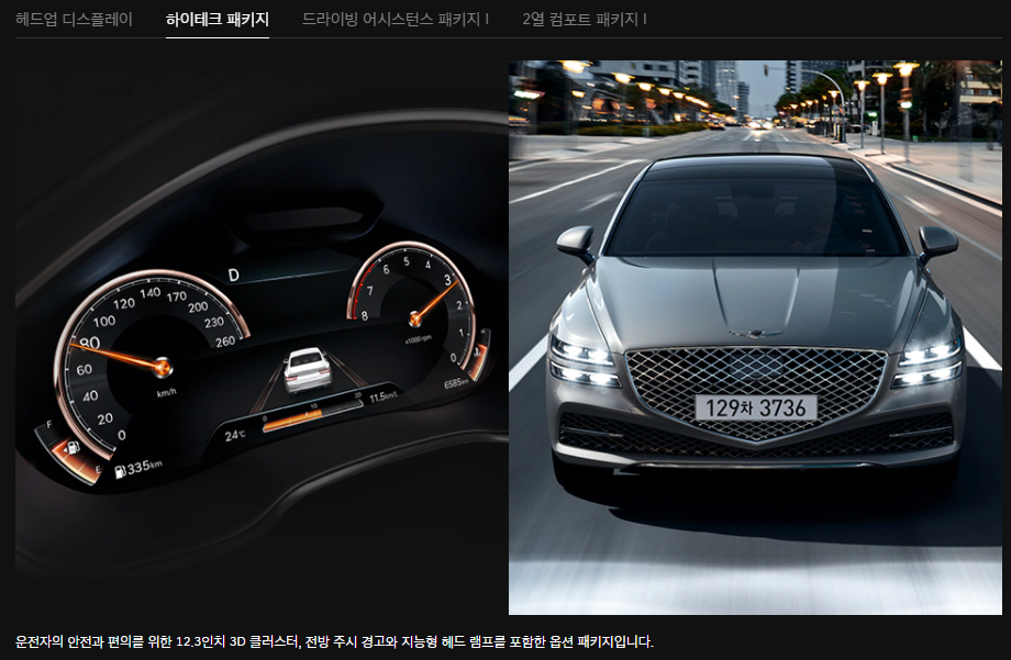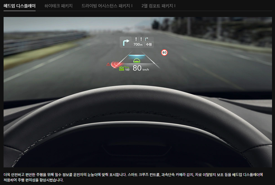처음에는 하이테크패키지 + 드라이빙 어시스턴트1 만 넣기로 했는데 실제로는 HUD 까지 넣다 보니 파퓰러를 넣게 된 것 같습니다.