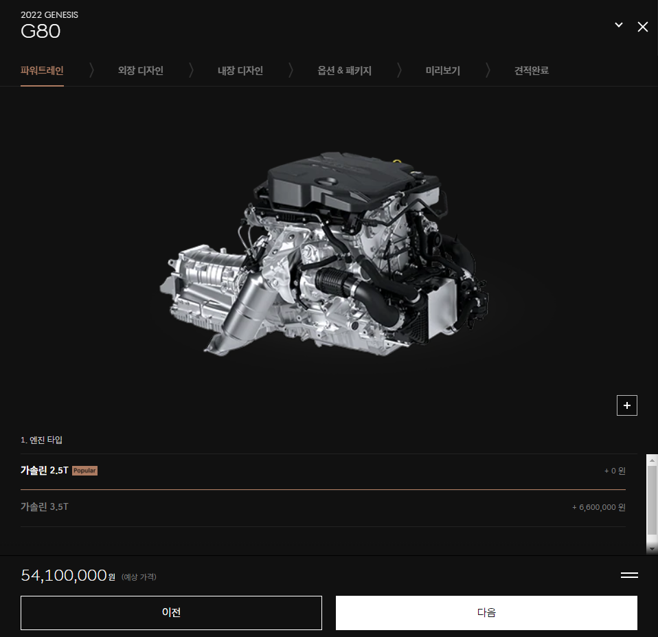 먼저 엔진을 생각합니다. 2.5터보인지 3.5터보인지 아니면 2.2디젤 인지 생각합니다.