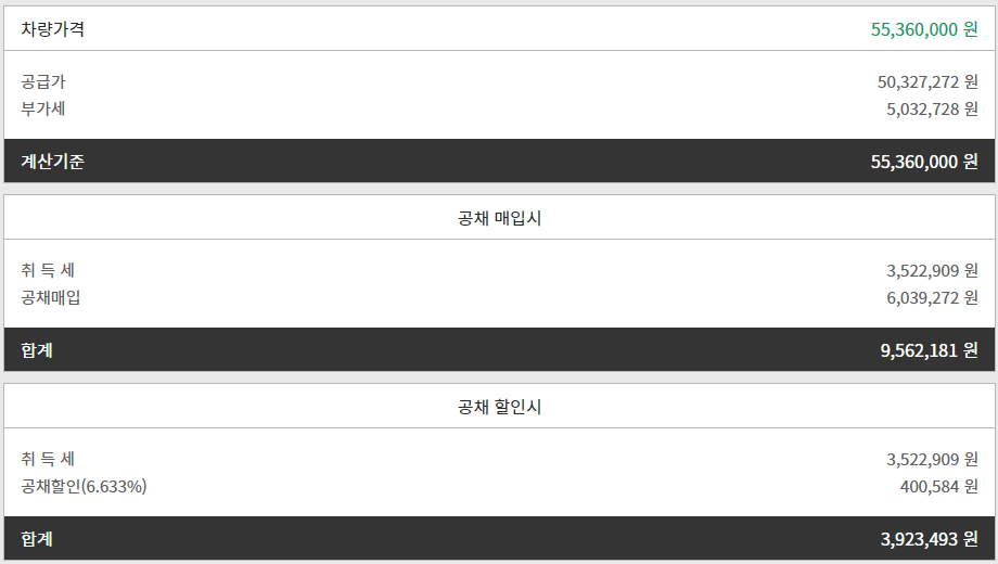 탁송료 포함 5536 만원으로 계산하면 하기와 같습니다.