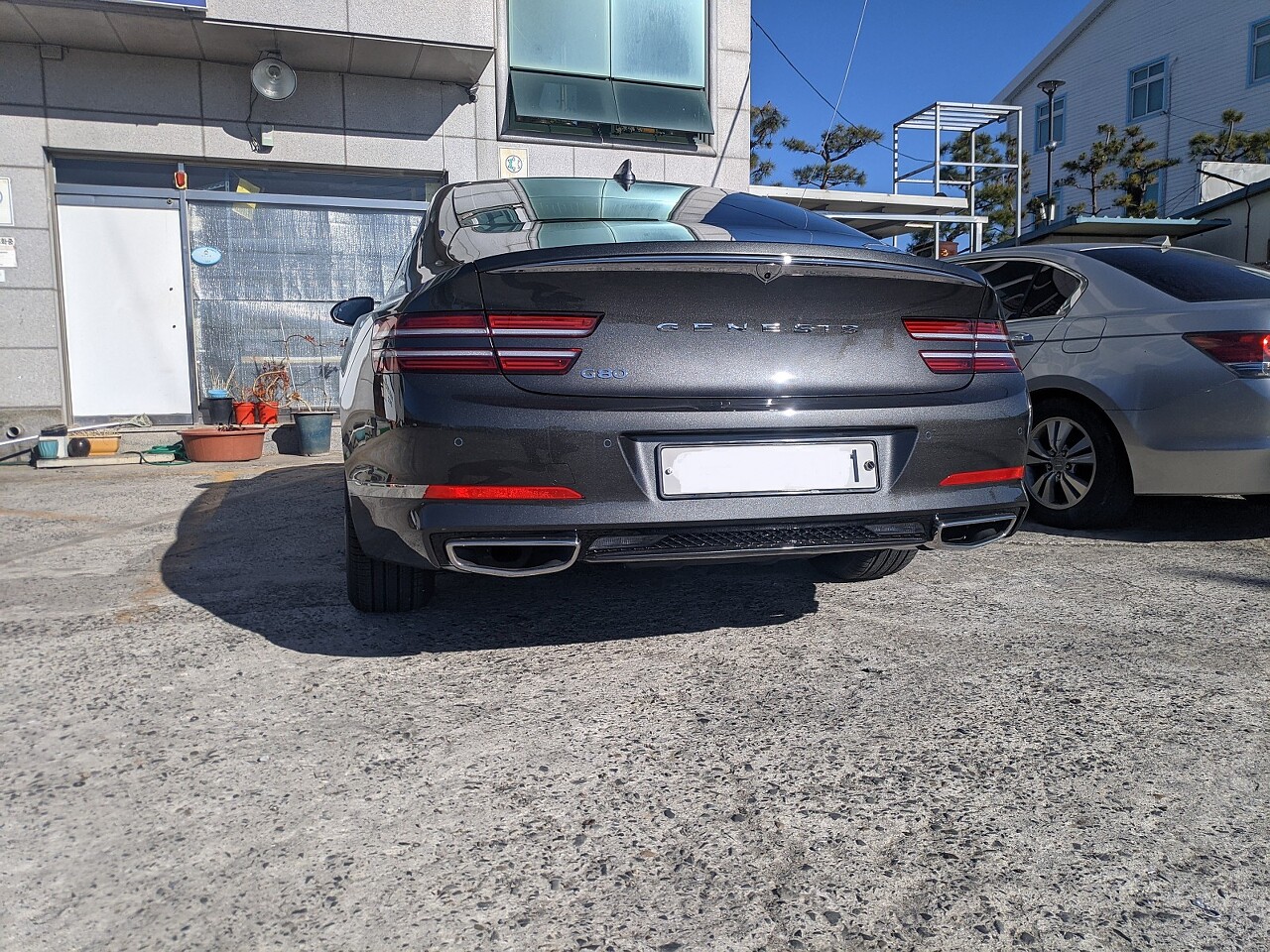 번호판 : 천공형으로 진행하였으며, 볼트는 제네시스 기본 제공 볼트, 그리고 번호판 가드의 경우 기본 제공품을 사용하려고 했으나 내구성에 문제가 있다고 하여, 번호판 제작소의 아무것도 적혀있지 않은 번호판을 장착했습니다.
