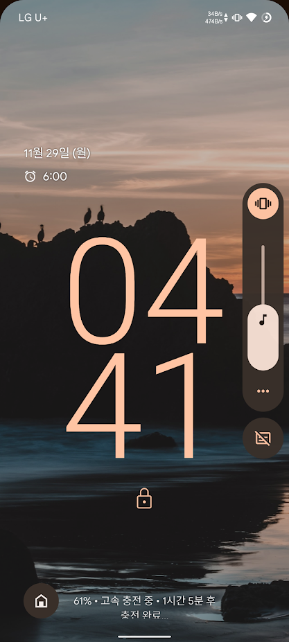 잠금화면 사진입니다. 그리고 볼륨빠도 이쁘네요.