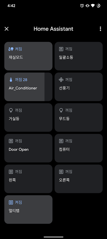 본래 전원 메뉴에 있던 기기컨트롤은 상단바로 이동이 되어 약간 접근성이 떨어지네요..