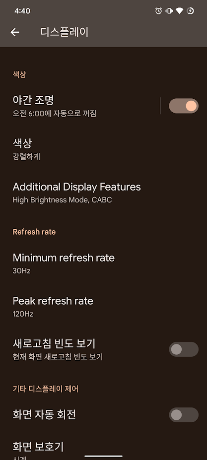 디스플레이관련하여 120프레임 지원하고, 동적으로 변화하게도 설정가능합니다.