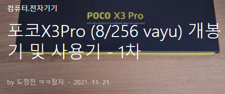 | 포코X3Pro (8/256 vayu) 개봉기 및 사용기 - 1차 (432) | 2021.11.21 |