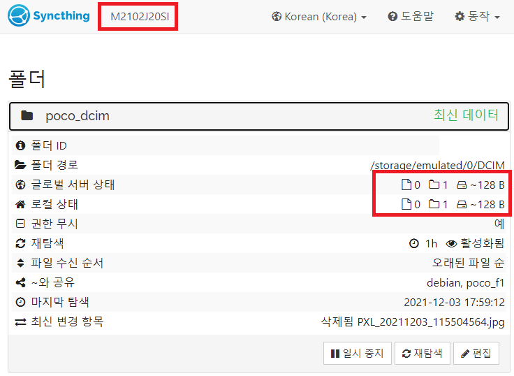3. Syncthing 설치 및 설정하기 - 1번 휴대폰