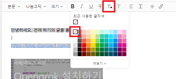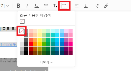 하기와 같이 글자색의 경우, 글자색 없음으로