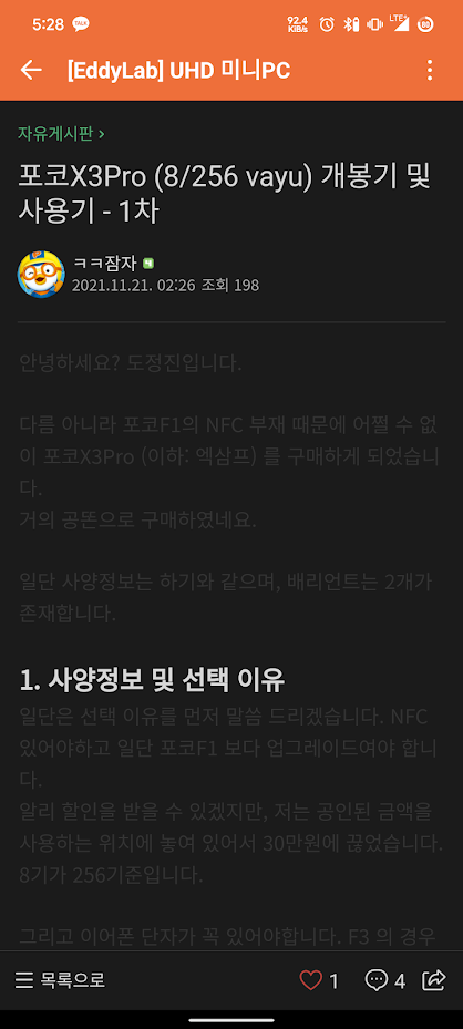 이렇게 게시글을 작성하면 하기와 같이 다크모드에서도 문제가 없습니다.