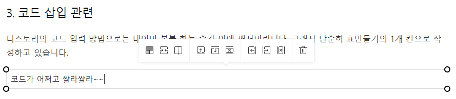 티스토리의 코드 입력 방법으로는 네이버 복붙 하는 순간 아예 깨져버립니다. 그래서 단순히 표만들기의 1개 칸으로 작성하고 있습니다.
