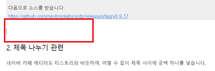 네이버 카페 에디터도 티스토리와 비슷하여, 어쩔 수 없이 제목 사이에 공백 하나를 넣습니다.
