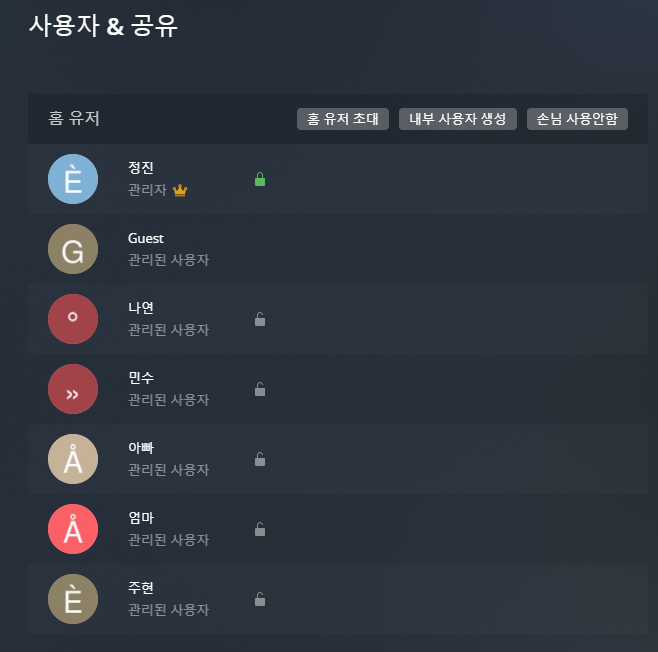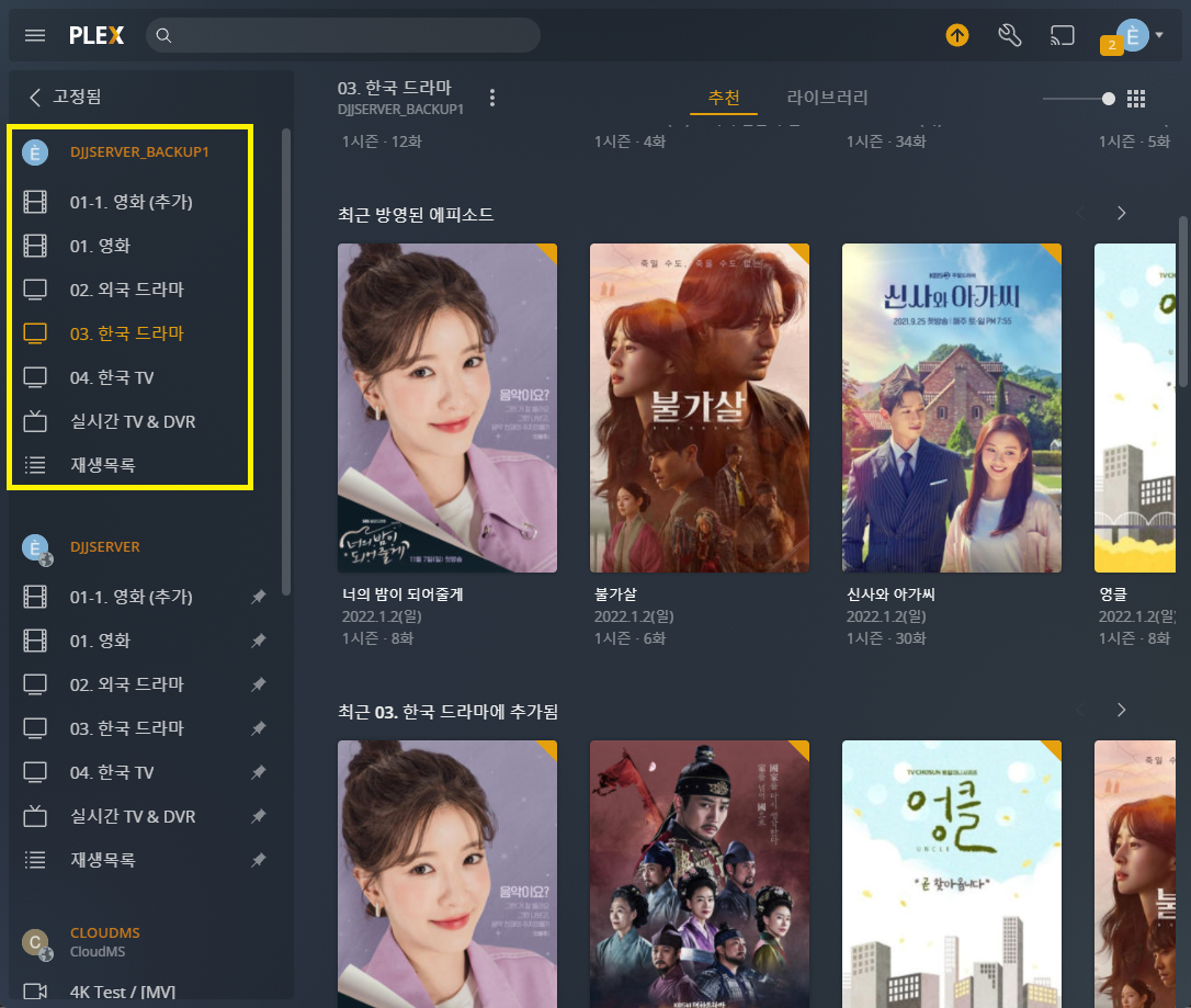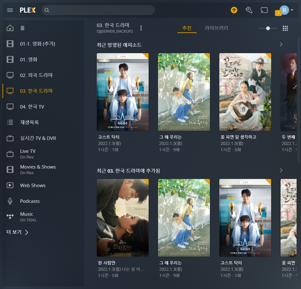이 라이브러리를 PLEX 계정 공유를 통해 아래와 같이 공유합니다.