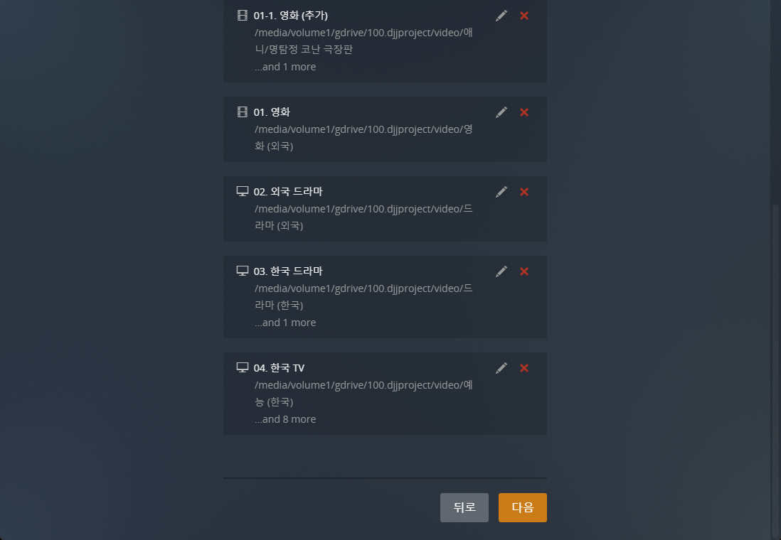 3. 2번의 폴더를 각기 plex 컨테이너에 연결함