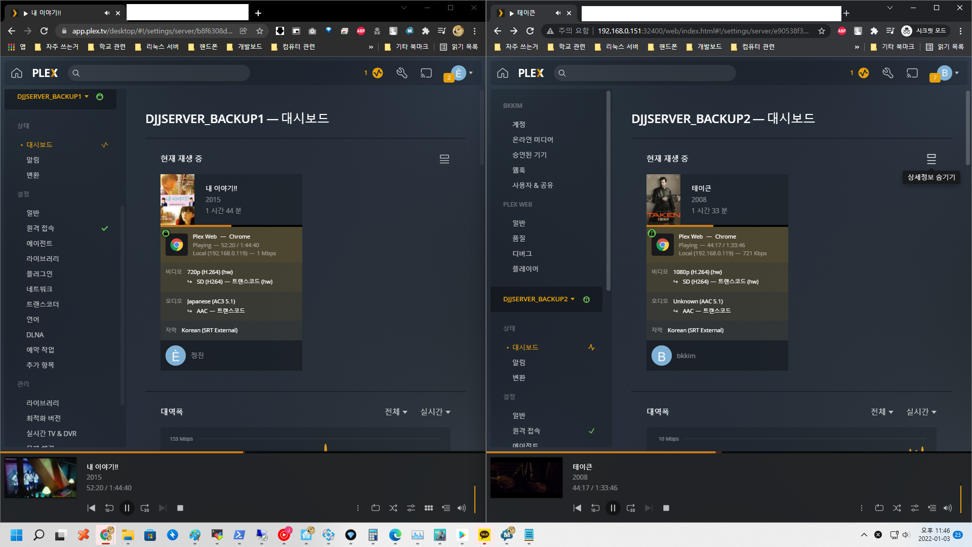 아래 2 인스턴스 모두 HW 트랜스코딩 중입니다.