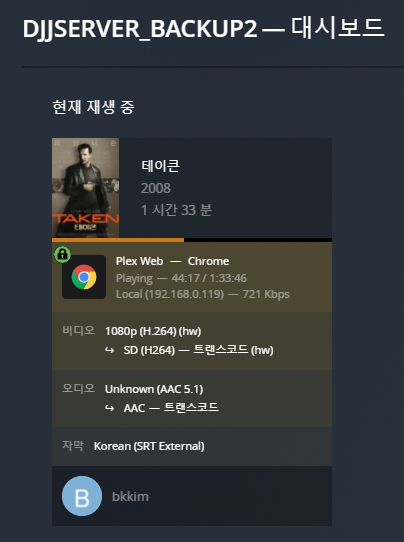 아래 2 인스턴스 모두 HW 트랜스코딩 중입니다.