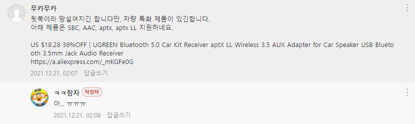 | UGREEN 블루투스 리시버 사용기 (BT5.0 / APT-X LL) (384) | 2021.12.21 |