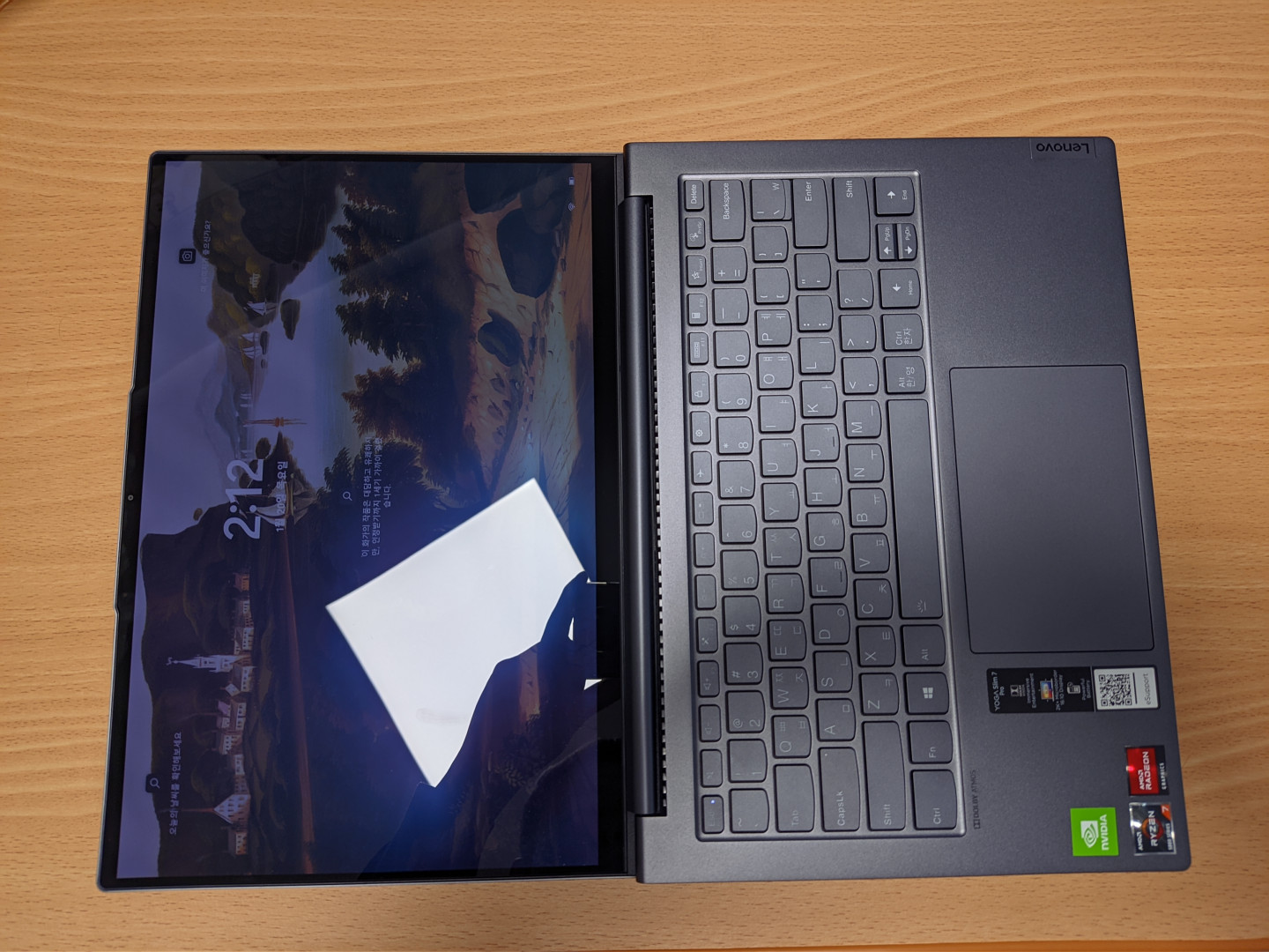 레노보라는 모양이 거슬린다는 분들이 많이 계시는데요. 실제로는 무언가 책갈피처럼 되어 있어서 저는 마음에 드는 디자인입니다.