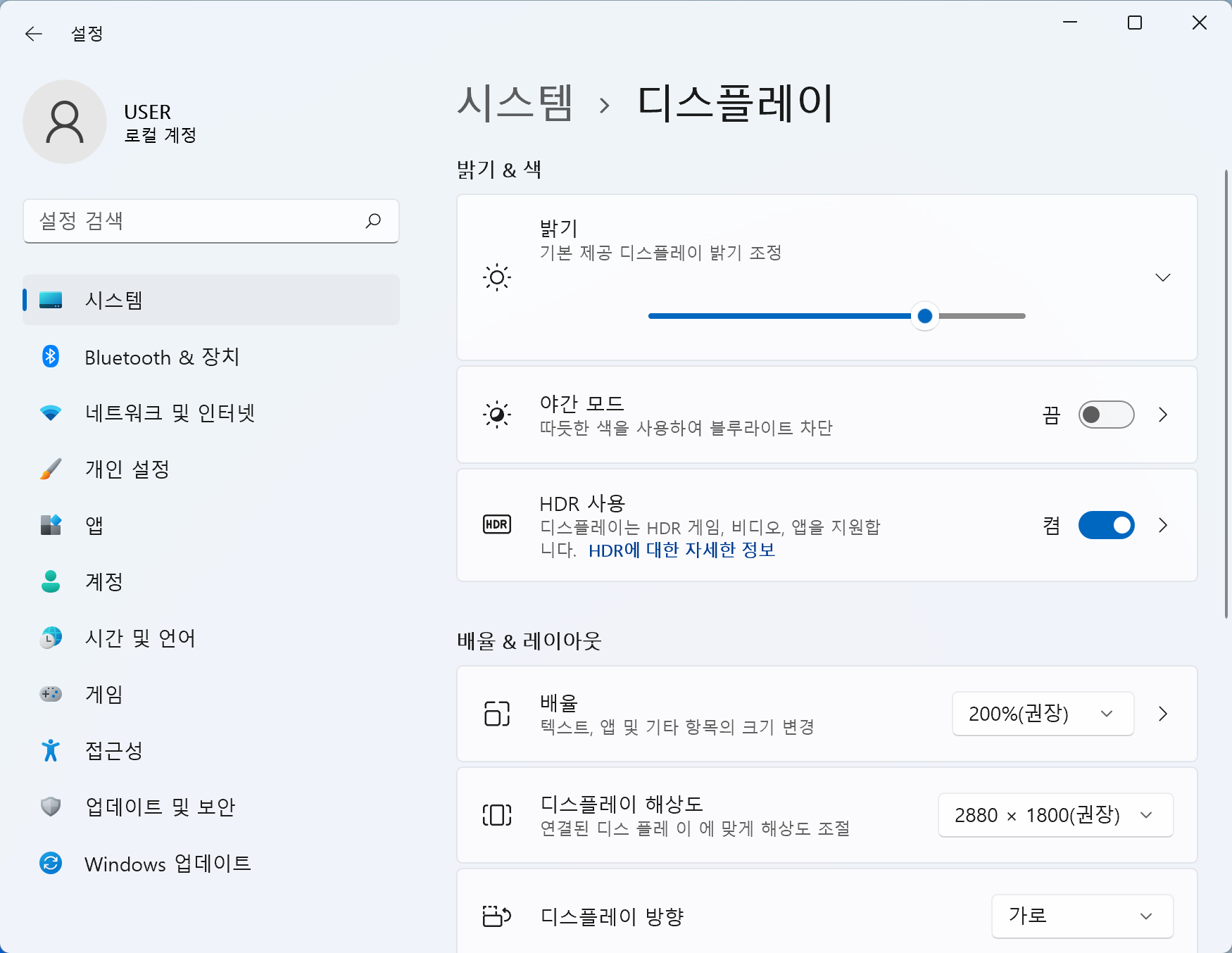 일단 14인치에 너무 큰 해상도가 들어갔습니다. 기본적으로 배율 설정이 200프로로 설정됩니다.