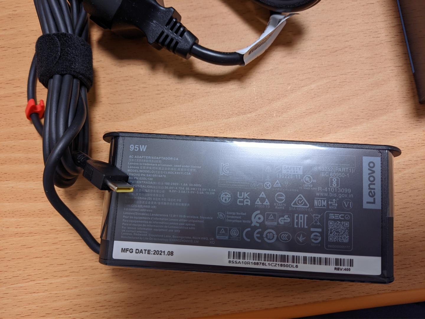 충전기는 95W 제품입니다. PD 충전 100W 급 싸제 충전기를 활용해야 정상적으로 충전이 될 것으로 보입니다.