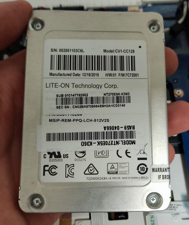 이미 SSD가 장착되어 있고 LITEON 제품입니다. 128GB 제품이네요.