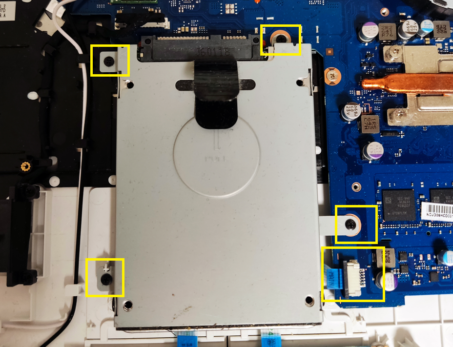 위와 같이 피스를 모두 풀어줍니다. 중간에 ODD 피스가 있는데요. 미리 ODD를 제거하시는게 조금 더 편하게 분해가 됩니다.