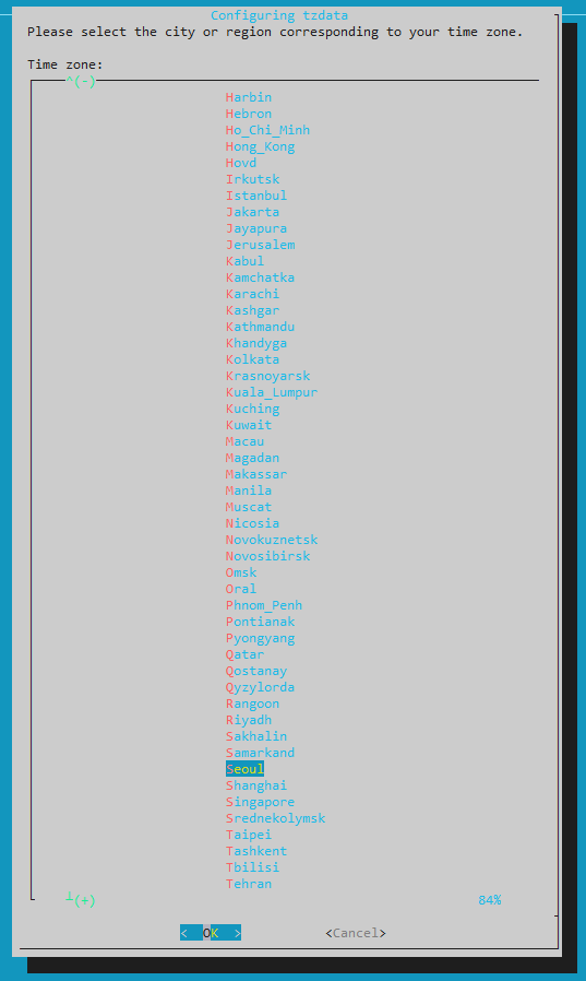 기본적으로 로케일이나 타임존이 설정되어야 함으로 아래와 같이 설정을 진행합니다.