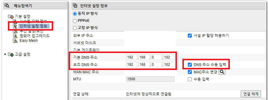 실제로 하위 공유기를 하나 더 두어 플러그만 연결할 수 있도록 구성하는게 맞으나, 지금 상황이 여의치 않아 메인 공유기에 DNS를 설정했습니다.