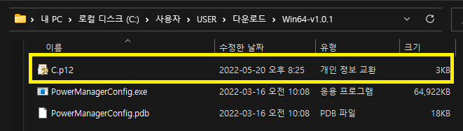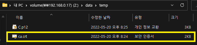그리고 클라이언트 인증서 파일을 동일 위치에 배치합니다.