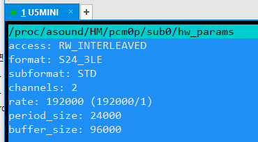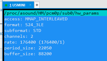 | root@AOL-Debian:/proc/asound/HM# cat pcm0p/sub0/hw_params access: MMAP_INTERLEAVED format: S24_3LE subformat: STD channels: 2 rate: 48000 (48000/1) period_size: 2400 buffer_size: 12000 |