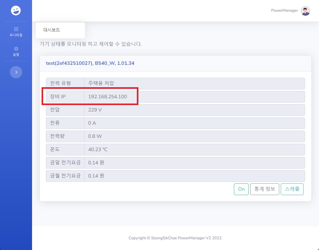 | root@debian:~# docker run -dit \ # 백그라운드로 실행 --name powermanager \ # 컨테이너 이름 지정 --restart unless-stopped \ # 사용자가 중지하지 않으면 재시작 --network macvlan \ # 네트워크 macvlan 설정 --ip=192.168.0.200 \ # IP 지정 -v /opt/powermanager:/app/data \ # 볼륨 설정 djjproject/dawon_css_server:latest # 컨테이너 이미지 설정 Unable to find image 'djjproject/dawon_css_server:latest' locally latest: Pulling from djjproject/dawon_css_server 22c5ef60a68e: Pull complete e8d557cb3d1e: Pull complete b6e62fd607fb: Pull complete d5091fc3bd05: Pull complete Digest: sha256:631550a1267b570cc8fd159270151954b5b6d377f01a8bfa8fc26fe750139ccf Status: Downloaded newer image for djjproject/dawon_css_server:latest b7a12cd467ce9eb084e7c6c0aa1c51aa04faf1ac0522521897dd43ada24e68f8 root@debian:~# docker ps CONTAINER ID IMAGE COMMAND CREATED STATUS PORTS NAMES b7a12cd467ce djjproject/dawon_css_server:latest "/bin/bash /app/init…" About a minute ago Up About a minute powermanager |