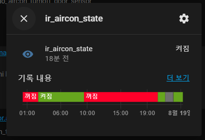 이때까지 에어컨 켜짐 꺼짐을 도어센서로 감지하고 있었는데.. 이게 실은 무풍모드로 많이 쓰다보니 감지가 잘 안되네요.