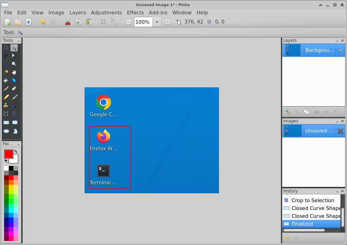 윈도우에서는 스크린샷을 찍어서 그림판으로 짤라내고 네모 박스를 추가하여 첨부를 하는데요. gimp 같은 무거운 것 말고 pinta 라는 그림판 클론이 있습니다.