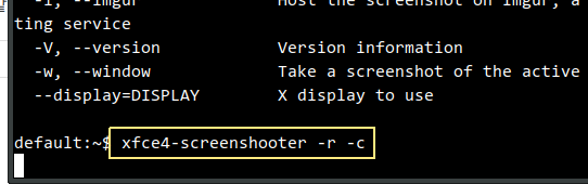 | default:~$ xfce4-screenshooter -r -c |