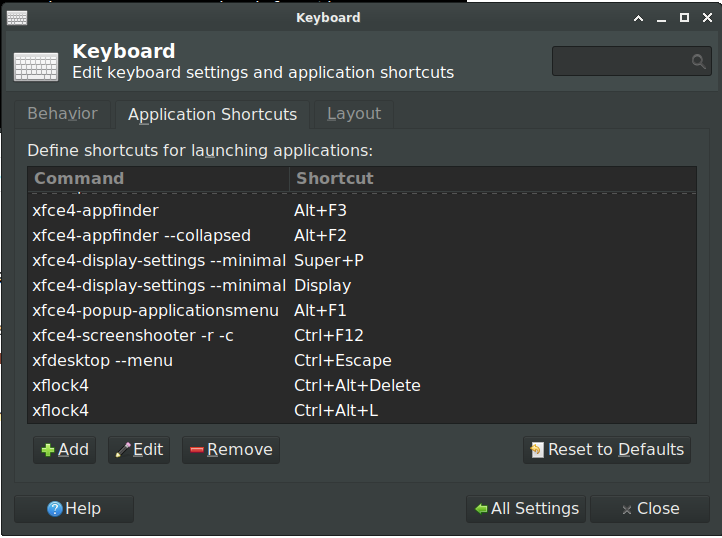 Applications --> Settings --> Settings Manager --> Keyboard 로 이동합니다.