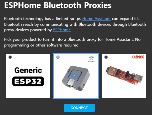 블루투스로 되는 제품들이 엄청 많을텐데 일단은 저는 INTEL NUC가 신발장에 있고, 제 무드등은 거리가 멀어서 잘 작동하지 않아... 근래에 본 ESPHOME 블루투스 프록시를 한번 시도해 보았습니다.